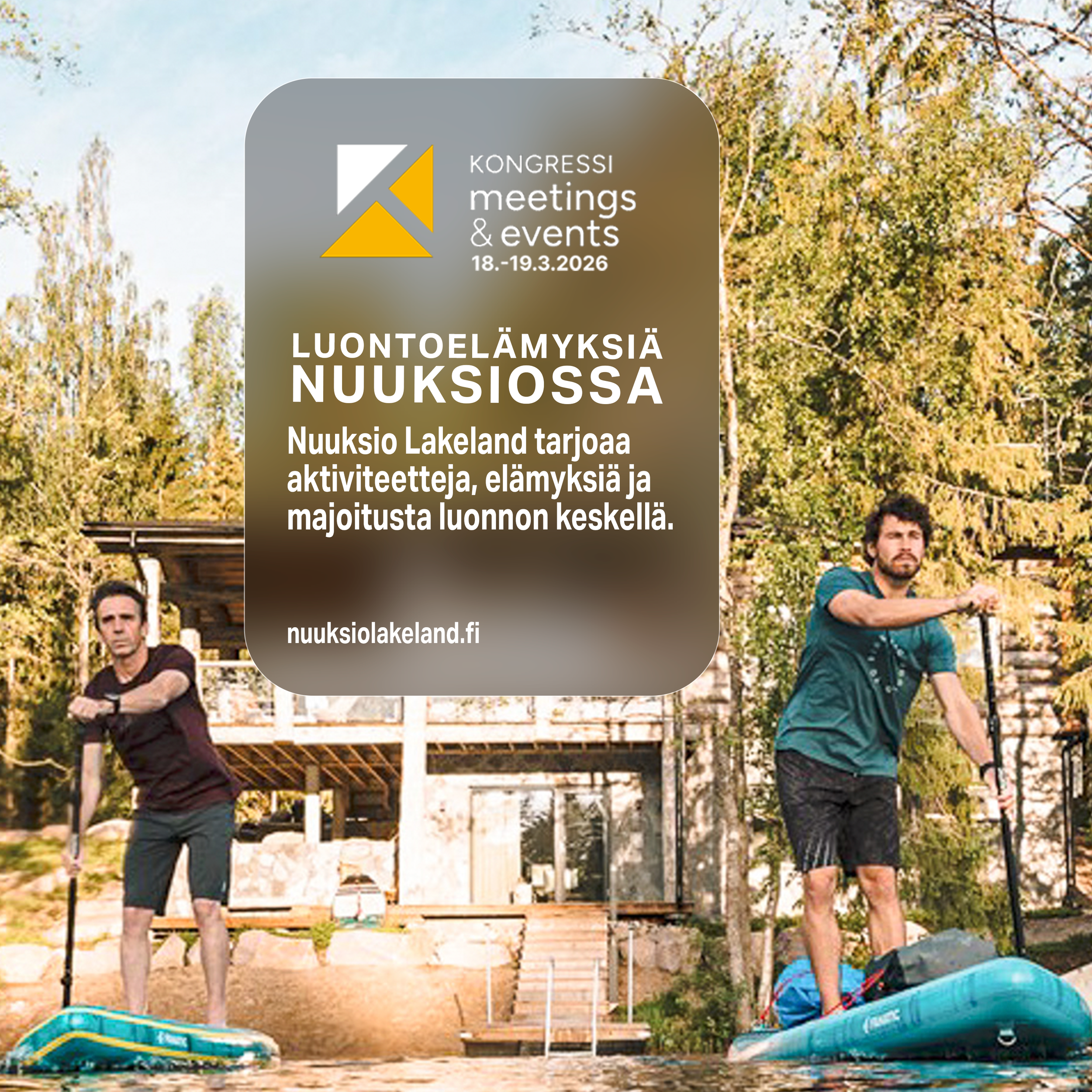 Nuuksiosta löydät inspiroivat kokouspaikat luonnon keskellä. Tule tapaamaan Nuuksio Lakelandin palveluntarjoajia Kongressimessuille 10.-11.3.2027
