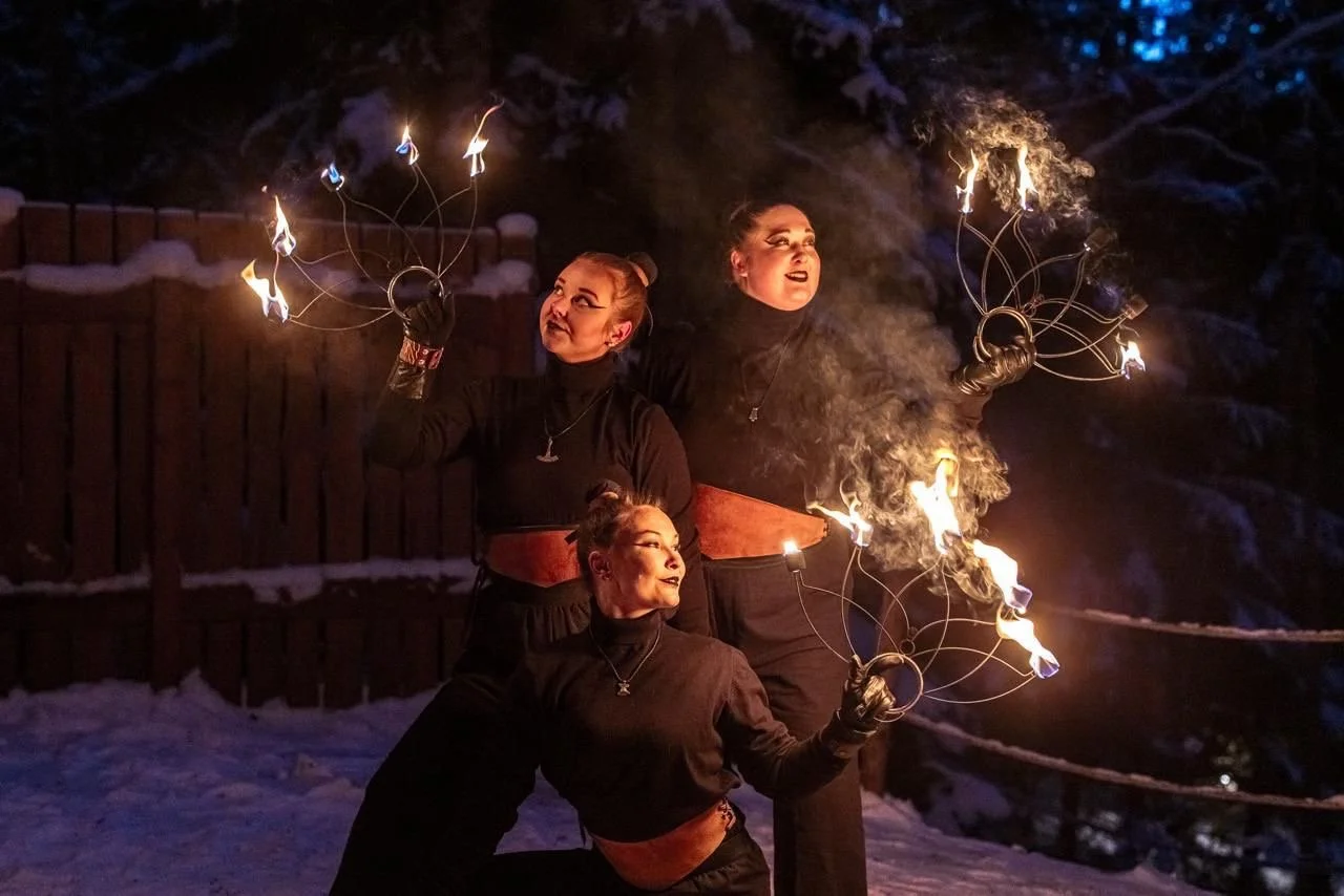 Tunnelmallisia iltaelämyksiä, tuliesitys, kotaillallisia, metsäravintoloita ja saunoja sekä valon ja tulen luomaa taikaa talvisessa luonnossa.